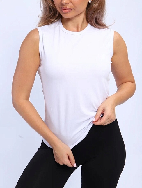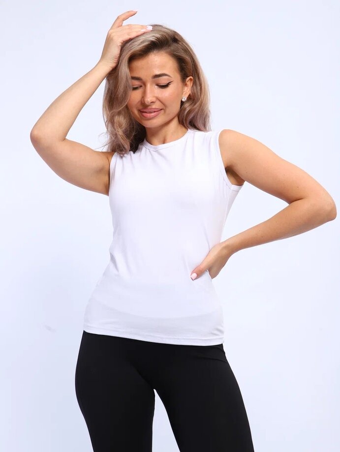 Женская майка 807 / Белый представляет собой облегающую модель средней длины с округлой горловиной. Модель отличается удобной посадкой благодаря эластичности материала.