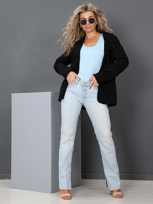 Женская майка выполнена из трикотажного полотна "вискоза". Майка полу прилегающего силуэта, с глубоким вырезом и широкими лямками. Горловина майки и проймы обработаны бейкой.