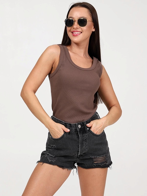 Женская майка из эластичного хлопкового трикотажа в рубчик. Состав ткани 95% хлопок, 5% лайкра.