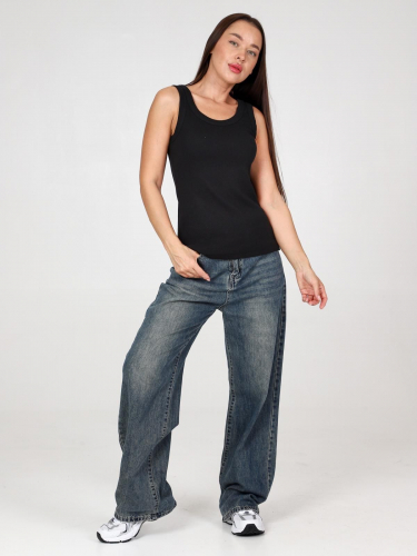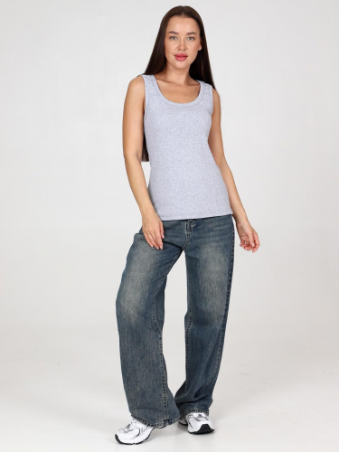 Женская майка из эластичного хлопкового трикотажа в рубчик. Состав ткани 95% хлопок, 5% лайкра.