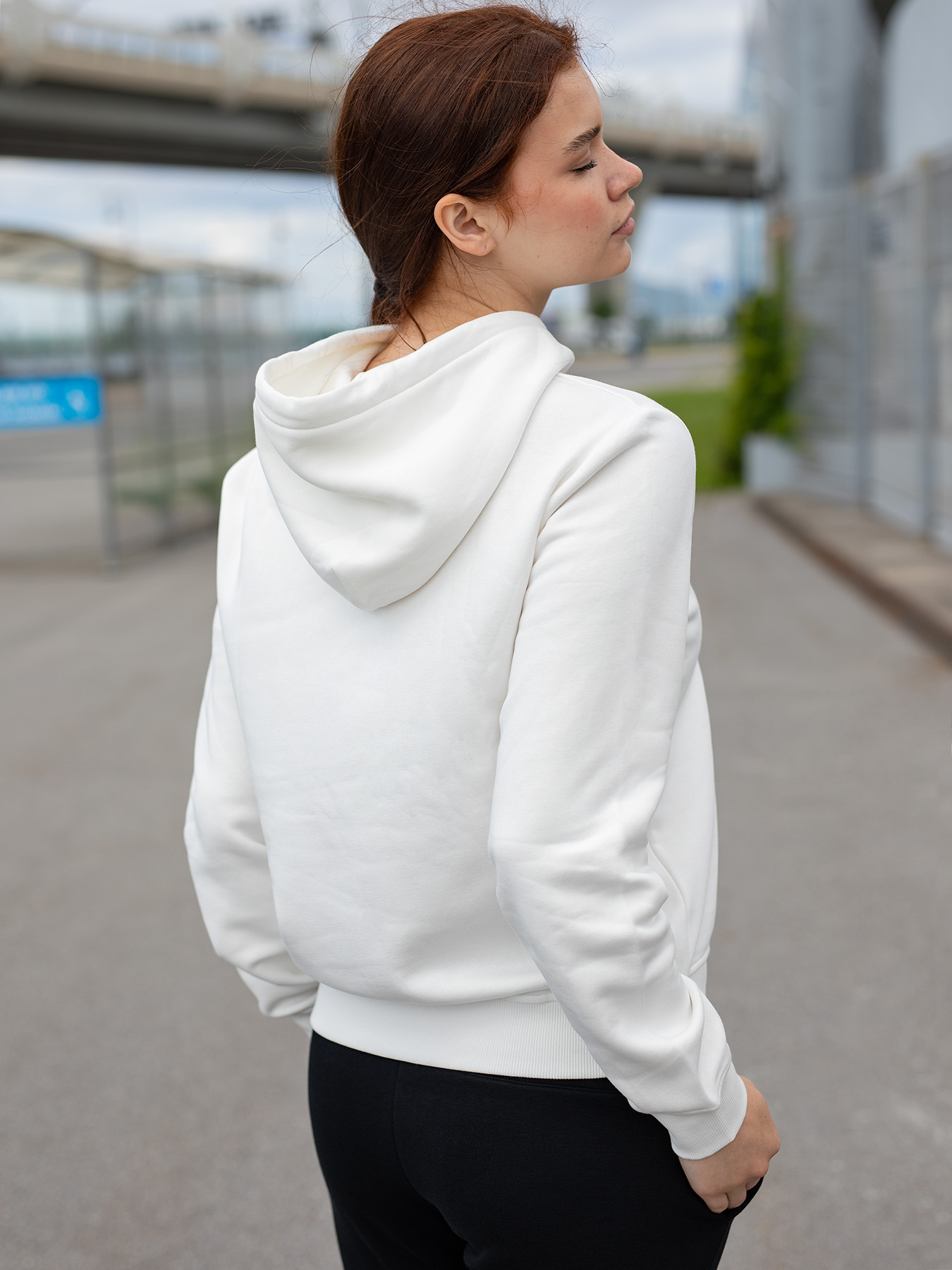 Женская толстовка-худи из коллекции Opium Rest. Выполнена из гладкого 100% хлопкового трикотажа с внутренним флисовым слоем, обеспечивающим уют и комфорт. Низ и манжеты рукавов на резинке для лучшей посадки. Спереди удобный и вместительный карман-кенгуру. Капюшон из двух слоев ткани, с кулиской и шнуром, не продувается и защитит от холода. Металлические брендированные люверсы и эглеты добавляют ценности этой модели. Оригинальная вышивка на груди в виде эмблемы и логотипа делает толстовку уникальной. Это изделие есть в нарядном белом цвете и практичном черном. С джоггерами P-97 – отличный комплект для отдыха.