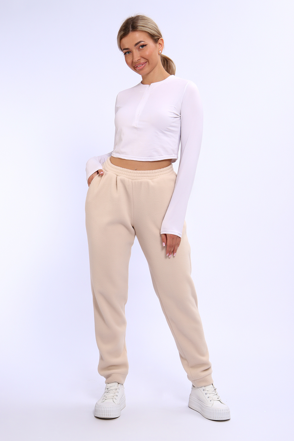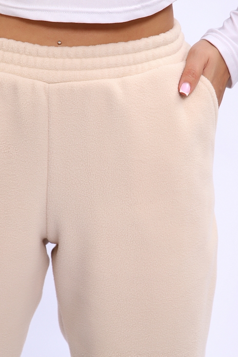 Очень удобные, теплые и комфортные брюки из флиса. Флис - синтетическая утепляющая ткань, производимая из полиэстеровых волокон, по своим свойствам максимально приближена к натуральной шерсти. Легкие по весу и в то же время очень теплые, брюки из флиса идеально подойдут для прогулок в прохладную погоду, и как домашняя одежда в межсезонный период. Брюки свободного кроя, слегка зауженные к низу, средняя посадка, пояс на резинке обеспечивает комфорт при носке. Снизу притачан манжет, по бокам внутренние карманы.