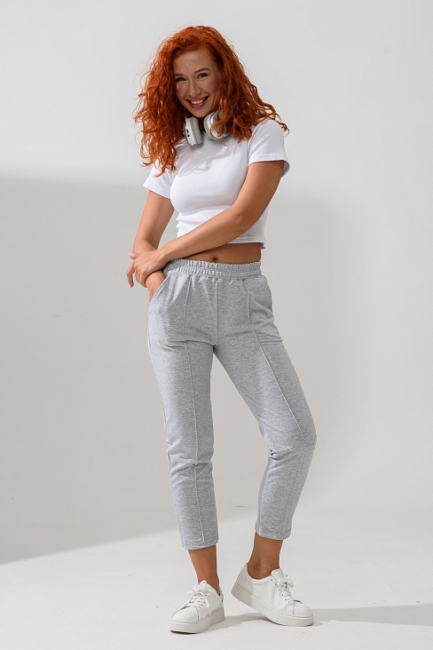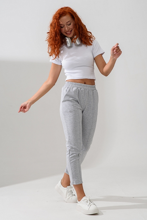 Классические женские брюки бананы имеют эластичный пояс на резинке, боковые карманы с отрезным бочком, элегантную прострочку по центру штанин, которая визуально удлиняет ноги. Благодаря высокой посадке легкие брючки помогают создать женственный силуэт. Строгие укороченные бриджи не скатываются и не линяют, держат форму и не мнутся, а колени не вытягиваются даже спустя время.