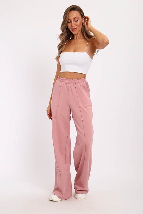 Брюки палаццо  выполнены из футера 2-х нитки , классические широкие свободные модные штаны с высокой посадкой  идеальны для повседневной носки на работу, для офиса и в школу весной, летом и осенью. Элегантные брюки со стрелкой помогут создать  стильный деловой образ,  и легкий повседневный) Широкие женские брюки из футера визуально удлиняют ноги, их можно надеть на занятия спортом, на танцы, свидание, прогулку и в  ресторан. Футер 2х нитка легко пропускает воздух, поэтому их комфортно носить летом. Штаны свободные, нигде не давят, поэтому подходят для беременных и как одежда для полных женщин. По бокам два прорезных кармана. Мягкая эластичная резинка на высокой талии придает расслабленность образу. Длина рассчитана для высоких, на рост 164-170 см, а миниатюрные девушки легко могут укоротить их под свой рост. Брюки-палаццо  подходят как худым, так и девушкам с большими размерами. Подойдут подросткам, девушкам и женщинам. Будут гармонично смотреться с вашим гардеробом как на торжественном мероприятии, так и дома в повседневной носке. Идеально садятся на любой тип фигуры. Трикотажные  брюки oversize с высокой талией подходят для школы, дома и активного отдыха. Базовые свободные однотонные прямые расклешенные трикотажные штаны впишутся в повседневный, деловой, офисный, праздничный, вечерний и домашний стиль.