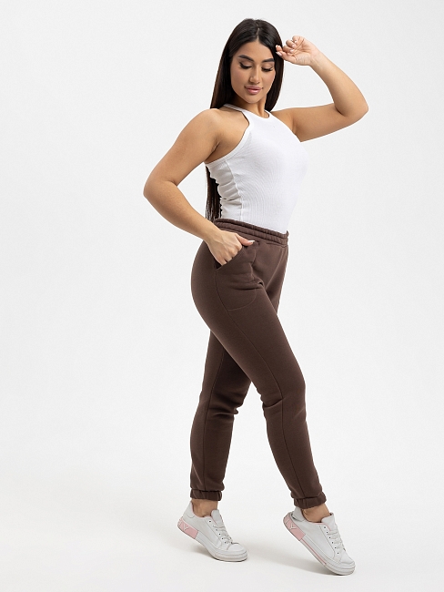 из футера с начесом, натуральной хлопковой ткани. Женские брюки на резинке - отличный вариант для занятий спортом, прогулок или в