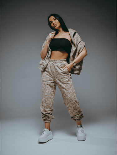 Брюки женские Стиль на резинке с отрезным поясом с карманами.