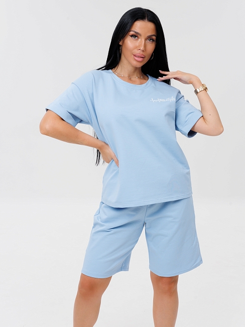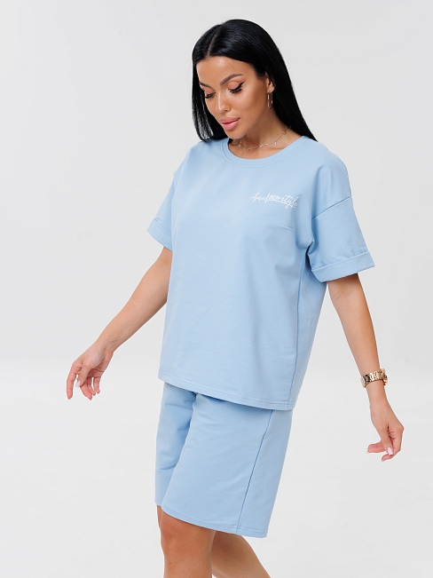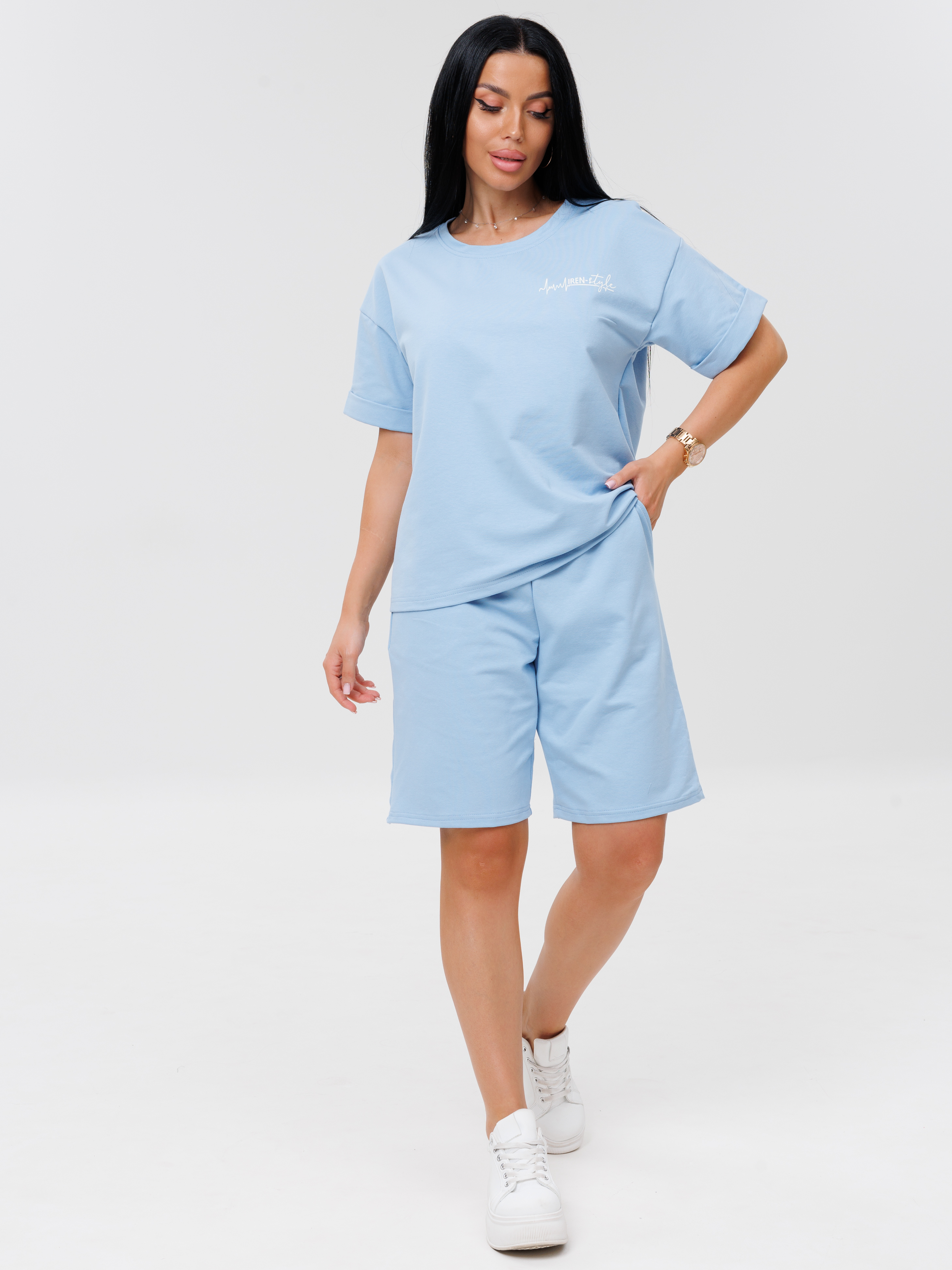 Костюм К-146 (Ф) из футера. Костюм состоит из футболки с коротким рукавом и шорт. Шорты на резинке, футболка свободного кроя.