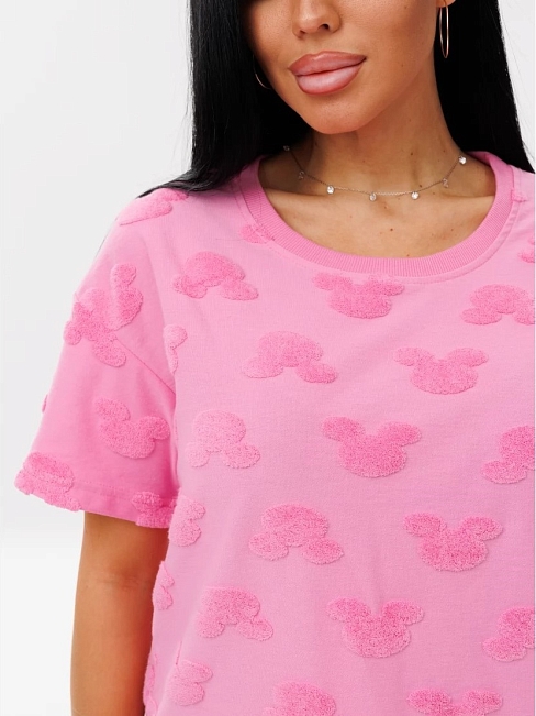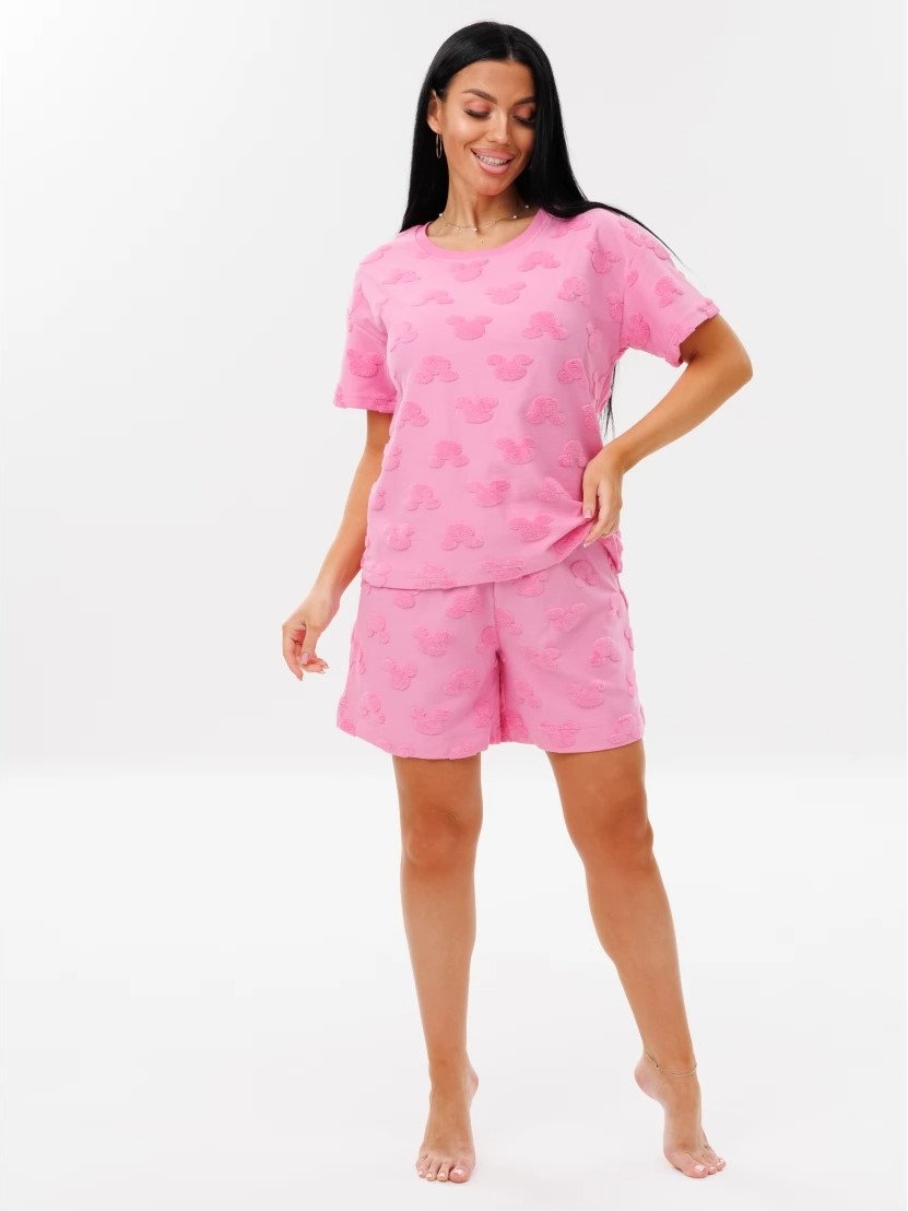 Женский костюм К-203(М) / Розовый состоит из свободной футболки и шорт. Женский костюм отшивается из мягкой ткани, хлопковой махры.