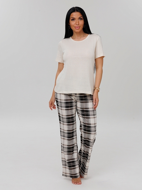 Женский костюм К-223(К+Риб) / Молочный (клетка)