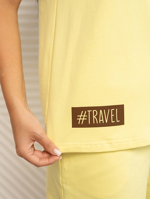 Молодежный летний костюм мод.1492/7 / Желтый из футера 2-х нитки. Свободная футболка с втачным рукавом и О-образной горловиной. Короткие свободные шорты с карманами. Костюм отлично подойдет для летних прогулок и занятий спортом.