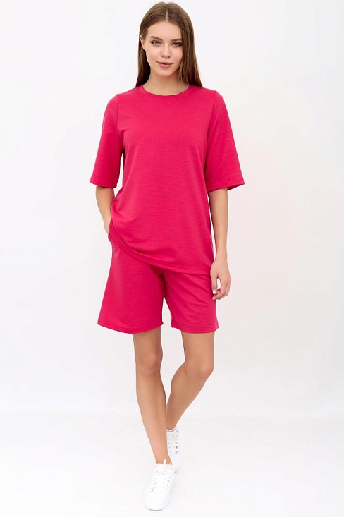Модный однотонный костюм Омега – тренд этого лета, стильный и красивый комплект для отдыха и прогулок. Состоит из шорт с высокой посадкой и свободной футболки. Модный вариант для девушек разного возраста и фигуры. Красиво выглядит и прекрасно дополняет летний образ. Легко комбинировать с любой одеждой и носить можно с разной удобной обувью.