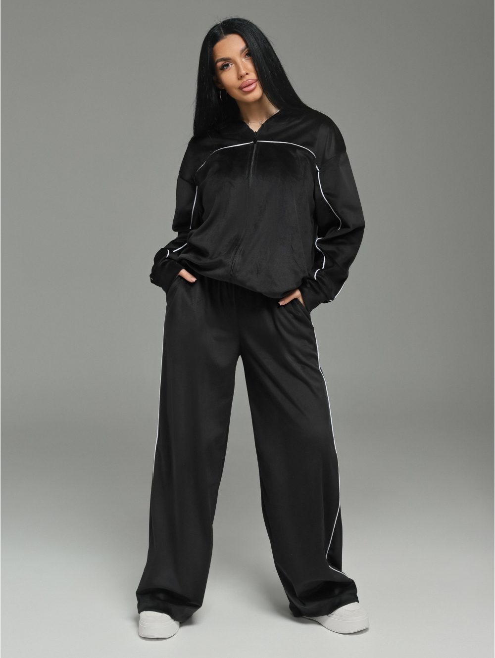 мягкий блеск и ощущение роскошного комфорта. Костюм выглядит дорого и статусно, оставаясь при этом невероятно уютным.