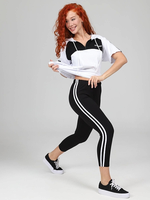 Женский костюм с лосинами из кулирки с лайкрой — это комплект, который обычно состоит из топа или футболки и лосин (легинсов). Такая одежда подходит для повседневной носки, спорта, йоги, гимнастики или домашнего отдыха. Кулирка с лайкрой — это эластичный трикотаж, который сочетает комфорт, воздухопроницаемость и износостойкость.