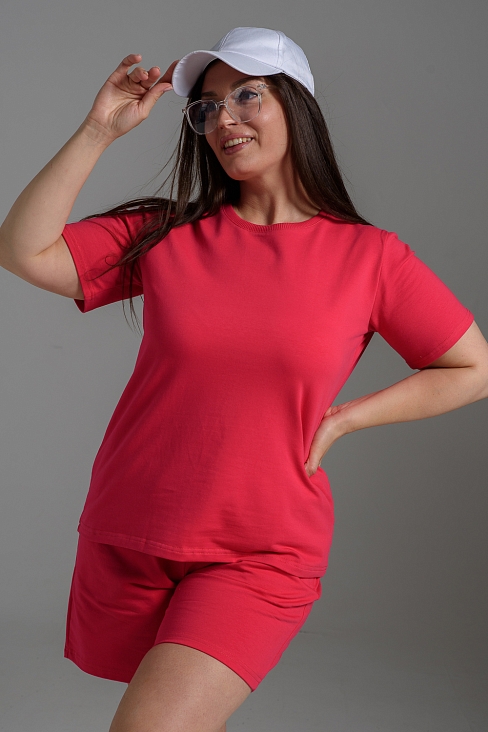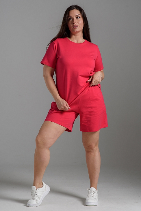 Женский летний костюм из футера 2-х нитки  комфорт, лёгкость и стиль каждый день! Оцените идеальное сочетание уюта и трендов! В комплект входит свободная футболка оверсайз и шорты с боковыми карманами - универсальный фасон для дома, прогулок, спорта и отдыха. Модель подойдёт для девушек любого роста и комплекции, включая подростков и plus size.