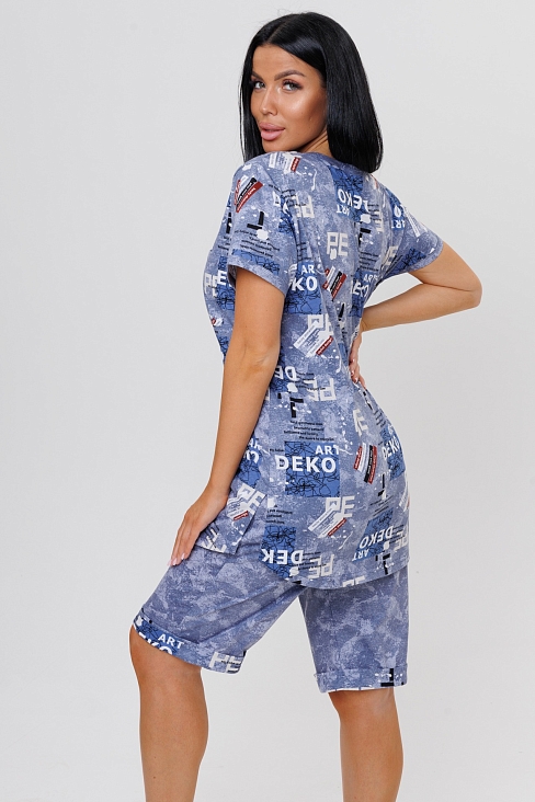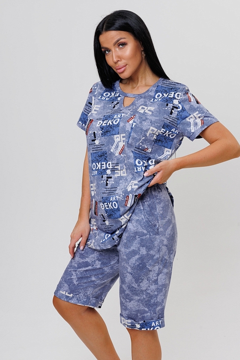 Женский костюм с шортами 2184 / Индиго из кулирки (100% хлопок). Летний костюм состоит из футболки с короткими рукавами и прямых шорт-бермудов.
