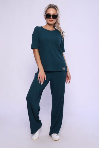 Женский костюм из лапши — это комплект одежды, изготовленный из трикотажного материала с рельефной текстурой, напоминающей макароны-лапшу. Такой костюм сочетает комфорт, эластичность и стильный внешний вид, подходит для повседневной носки, дома, прогулок или спорта.