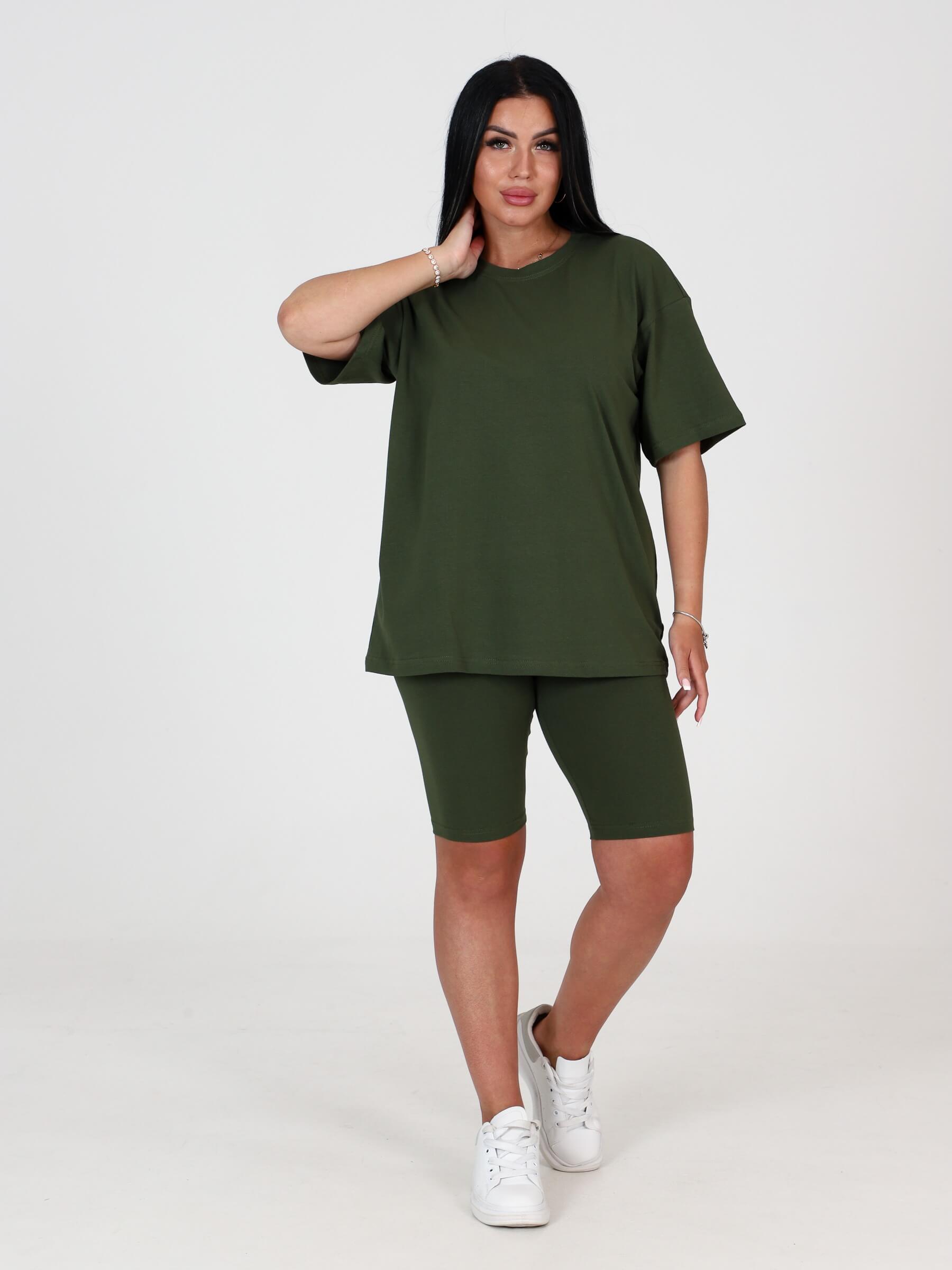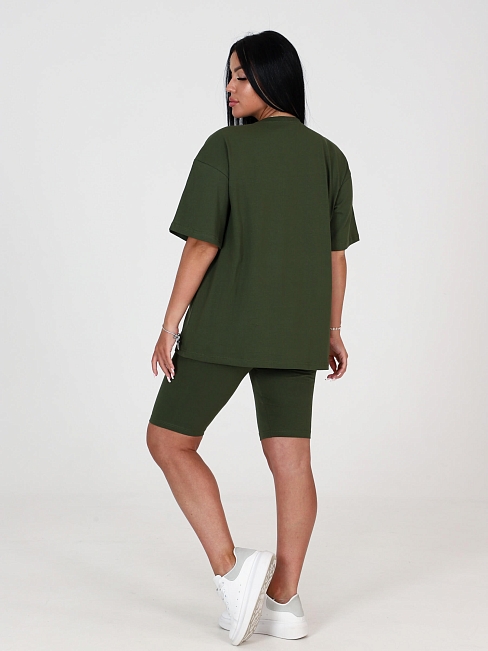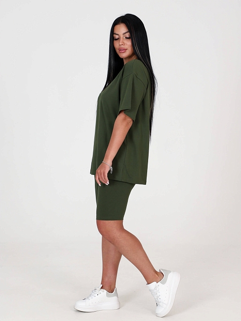 Женский костюм из кулирки с лайкрой (высшего качества - пенье) КК-1503 / Хаки станет стильным и любимым образом на разные случаи жизни. Он идеально подойдет для бега, занятий фитнессом, прогулок и домашнего отдыха. Изготовлен костюм женский с велосипедками (шортами) из качественного материала. Трикотажное полотно дышащее, приятное к телу, также простое в уходе и после множества стирок не потеряет свой первоначальный вид и цвет. Костюм состоит из футболки и велосипедок, которые благодаря лайкре тянутся и хорошо будут облегать ноги. Футболка женская оверсайз, удлиненная. Велосипедки / шорты длиной до колен, с удобным эластичным поясом. Костюм спортивный женский представлен в нескольких красивых расцветках.