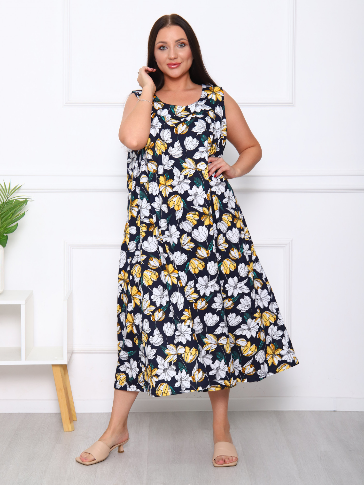 Женский сарафан М-170 / желтые цветы
