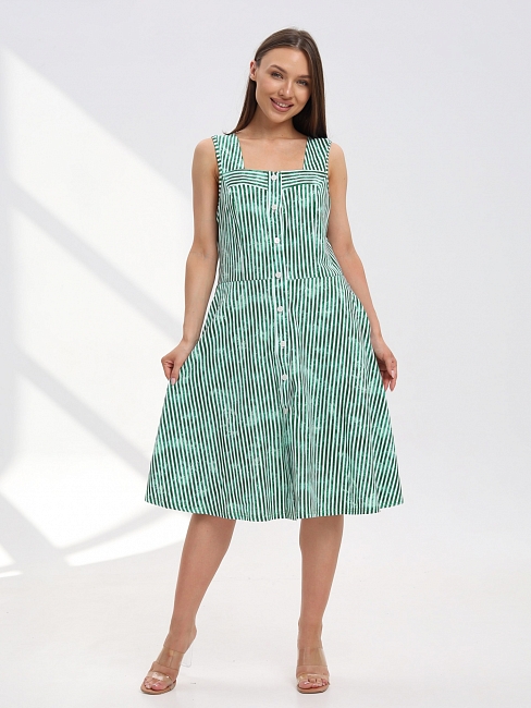 из кулирки, 100% хлопок. Летний сарафан на пуговицах, средней длины.