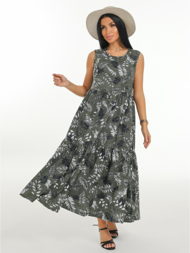 Сарафан женский Валенсия А-образного силуэта, длиной до щиколотки. Лямки сарафана представляют собой завязки из окантовки. В левом боковом шве разрез.