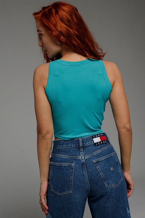 Базовый топ укороченной длины. Выполнен из фактурной ткани в рубчик из 100% полиэстера. Облегающий крой отлично садится по фигуре, подчеркивая её достоинства. Круглая горловина, широкие бретели, не просвечивает, топ максимально комфортный в носке.