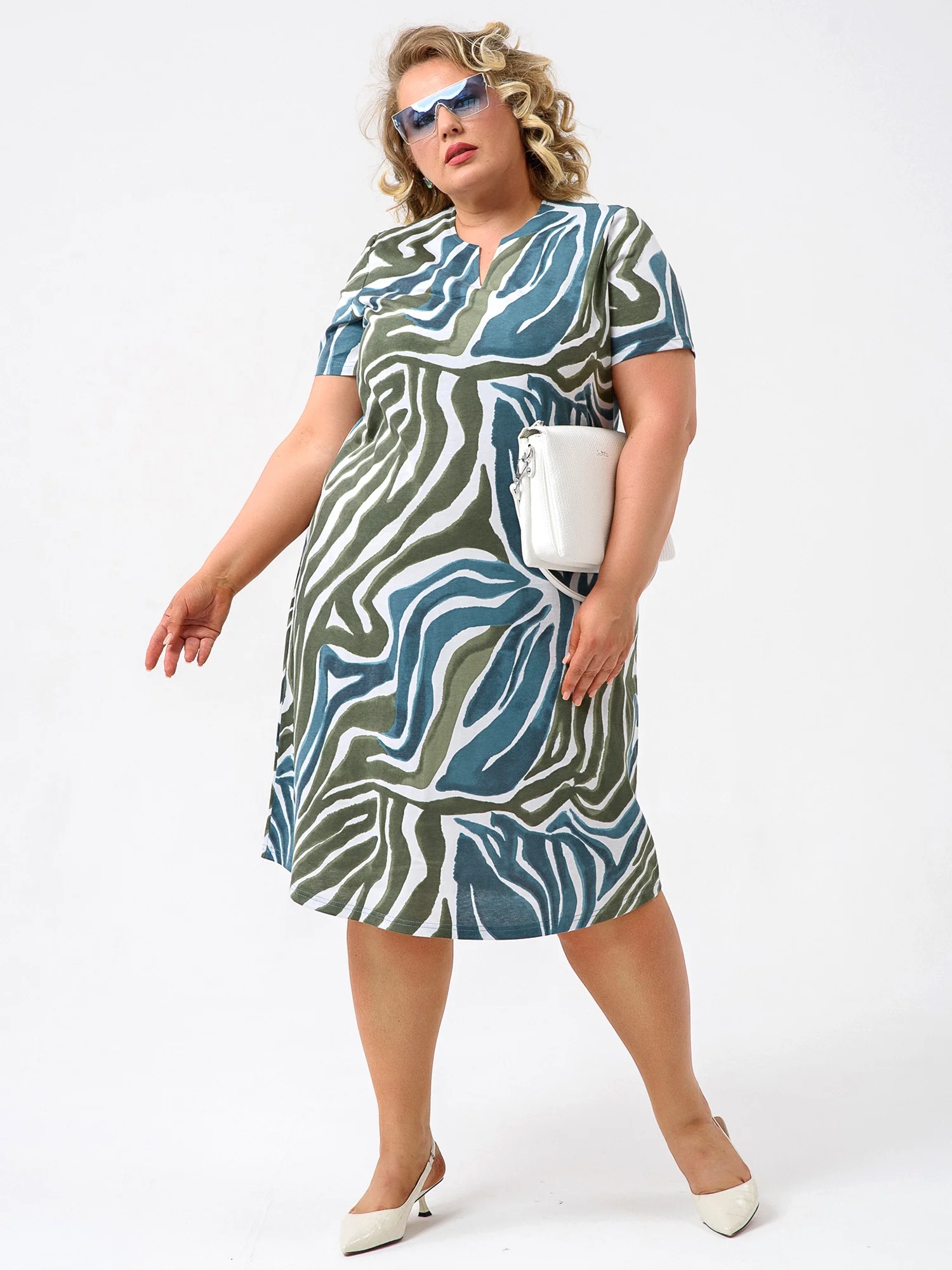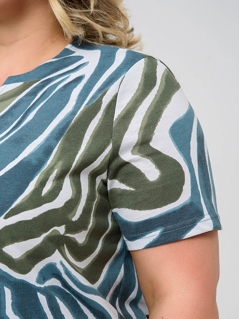 Женское платье "Мираж" 2229-К / Зеленый с короткими рукавами, средней длины. Женское летнее хлопковое платье отшивается в яркой расцветке и имеет широкий размерный ряд.