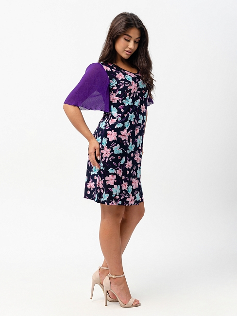 из легкой ткани масло. Женское платье с короткими рукавами и цветочным принтом займет достойное место в Вашем гардеробе.
