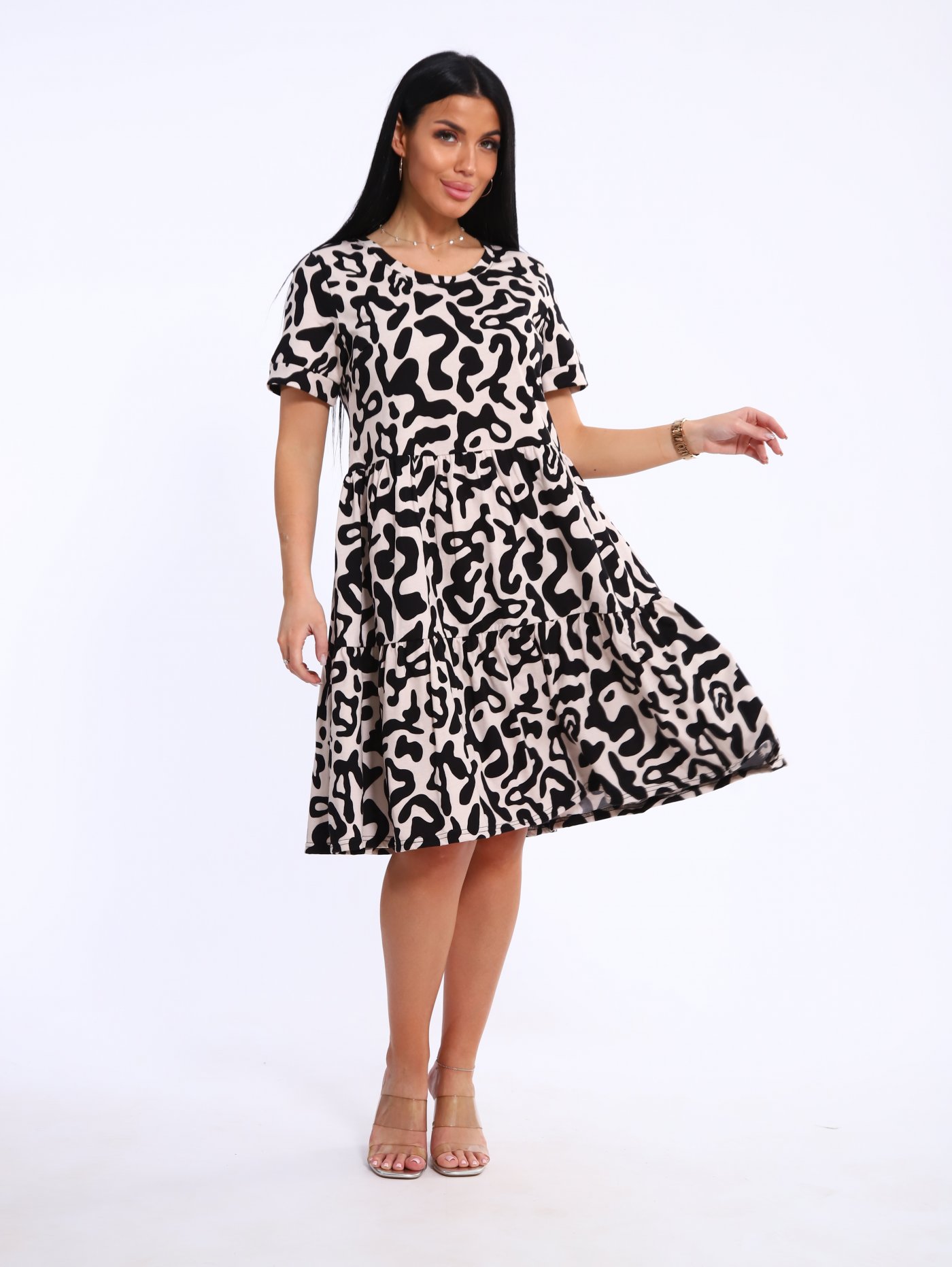 кулирки, 100% хлопок. Женское платье длиной ниже колена - отличный вариант для