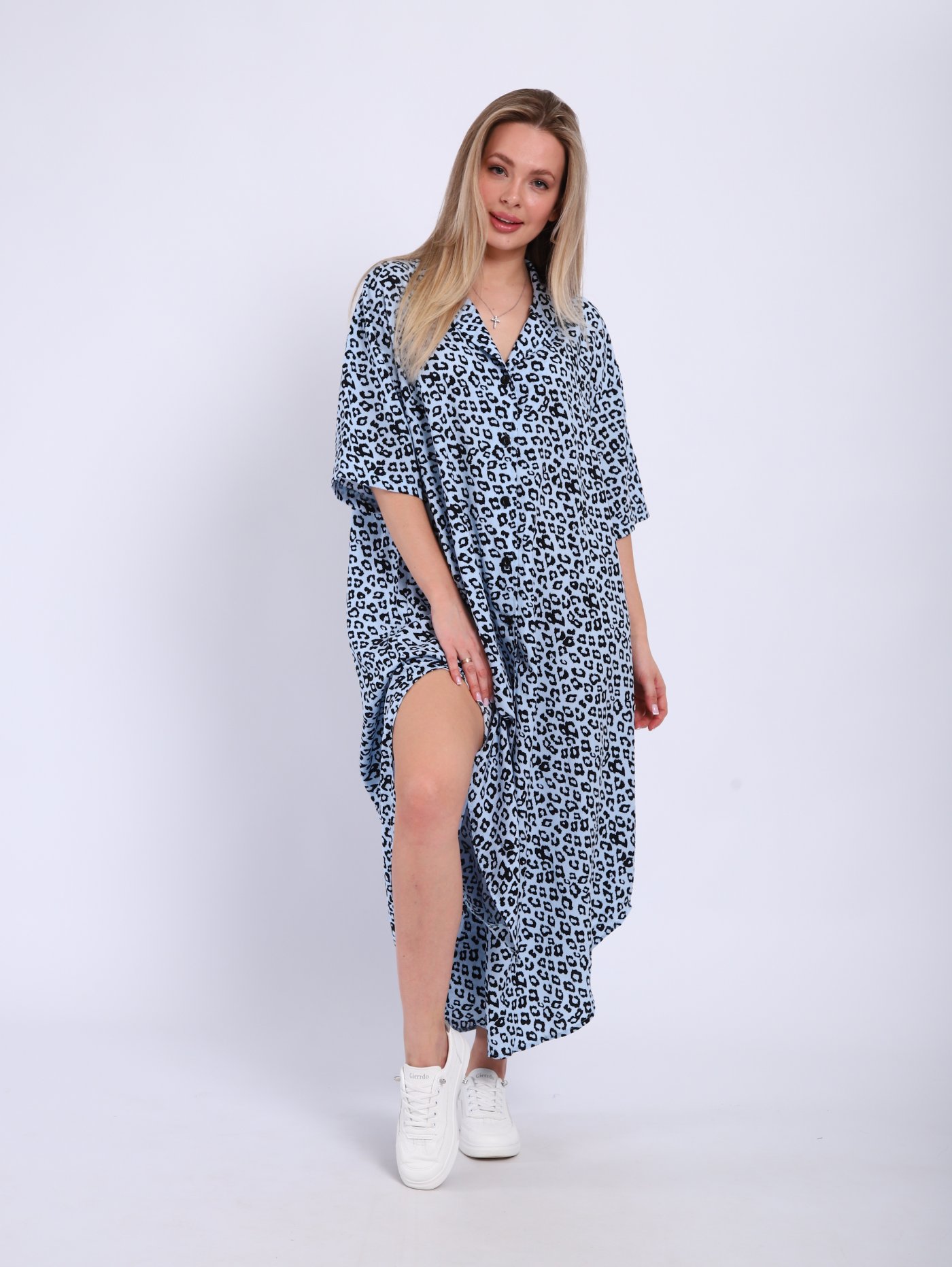 легкой ткани, штапеля. Летнее платье на пуговицах, длиной макси.