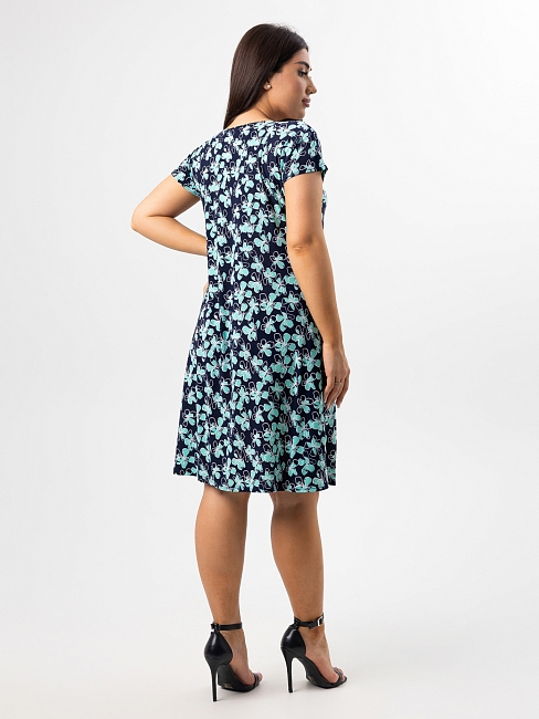 короткими рукавами, отшивается из легкой ткани масло. Платье с яркими принтами,