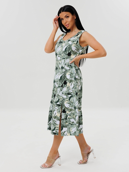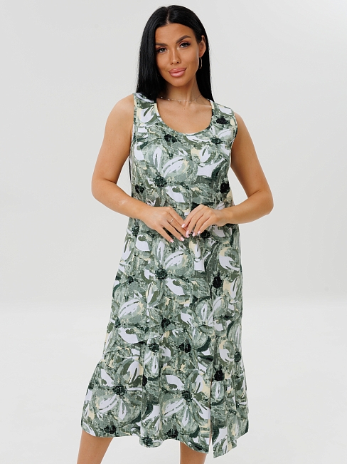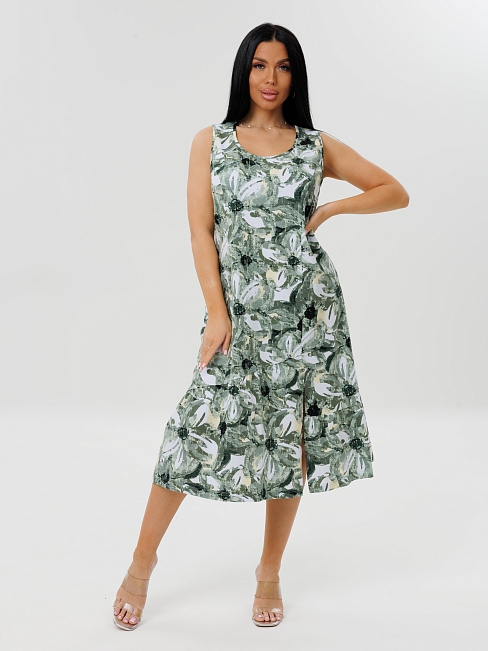 Женское платье Пл-111(К) / Зеленый (цветы) отшивается
