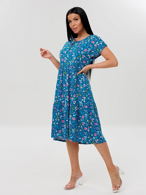 Женское платье Пл-64(К) с короткими рукавами. Женское летнее платье средней длины отшивается из кулирки, 100% хлопок, имеет широкий размерный ряд и яркие расцветки.