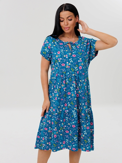 Женское платье Пл-64(К) / Синий (мелкие цветы)
