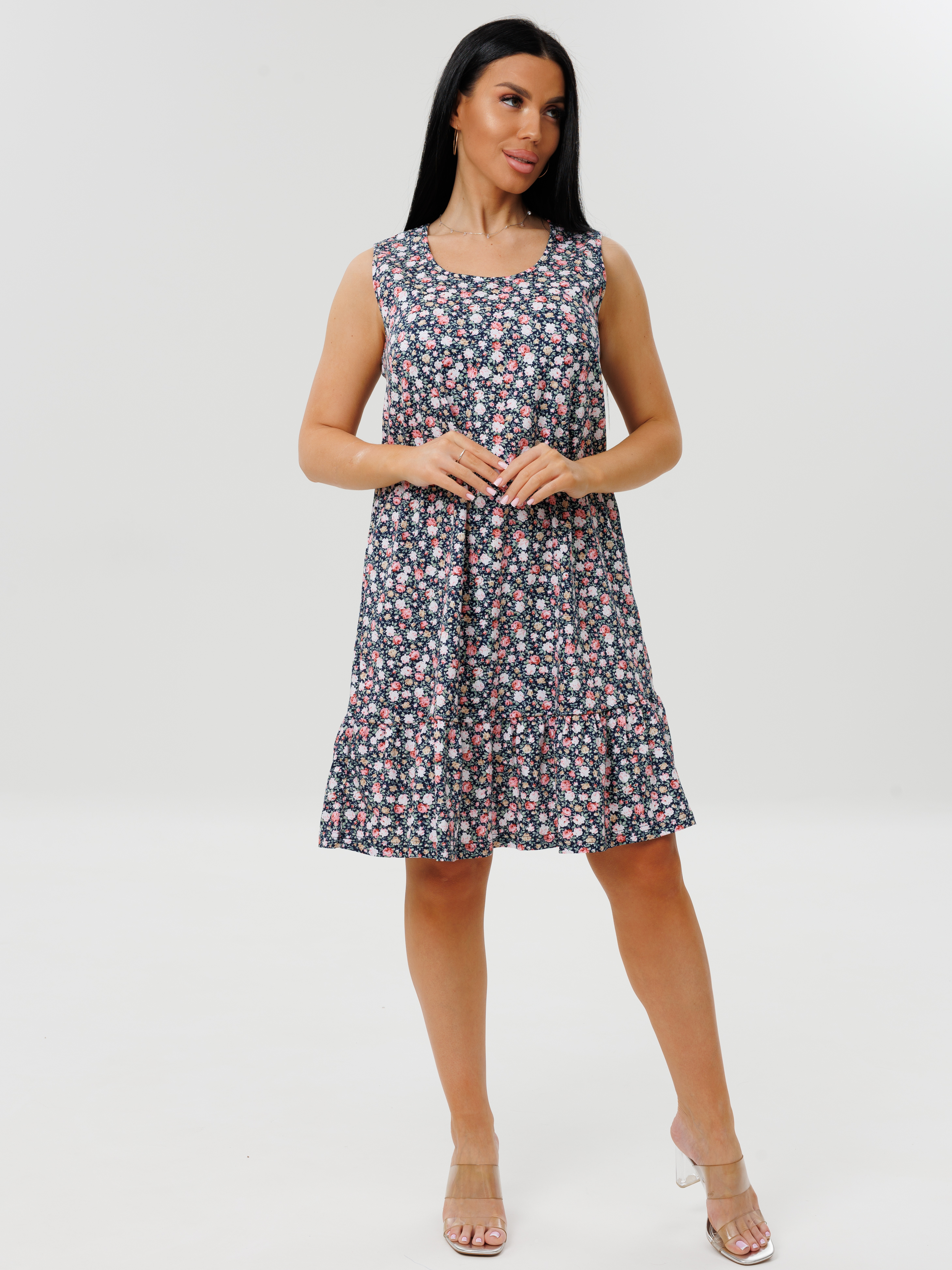 Женское платье Пл-97(шт) без рукавов. Женское короткое летнее платье имеет широкий размерный ряд и яркие расцветки.