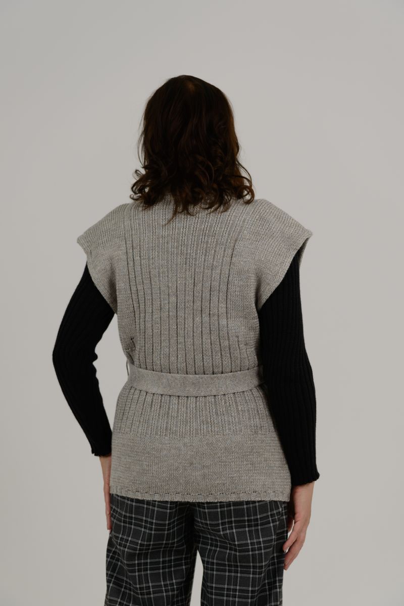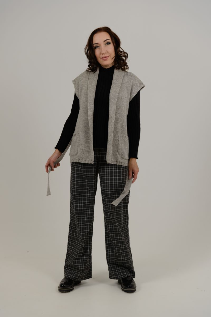 Описание: Жилет с поясом, карманы, линия плеча спущенная, плотный трикотаж.