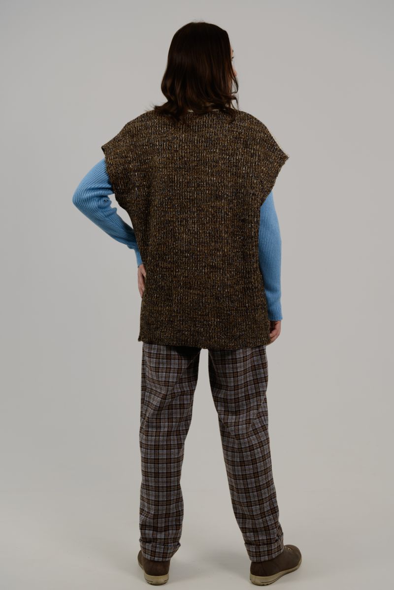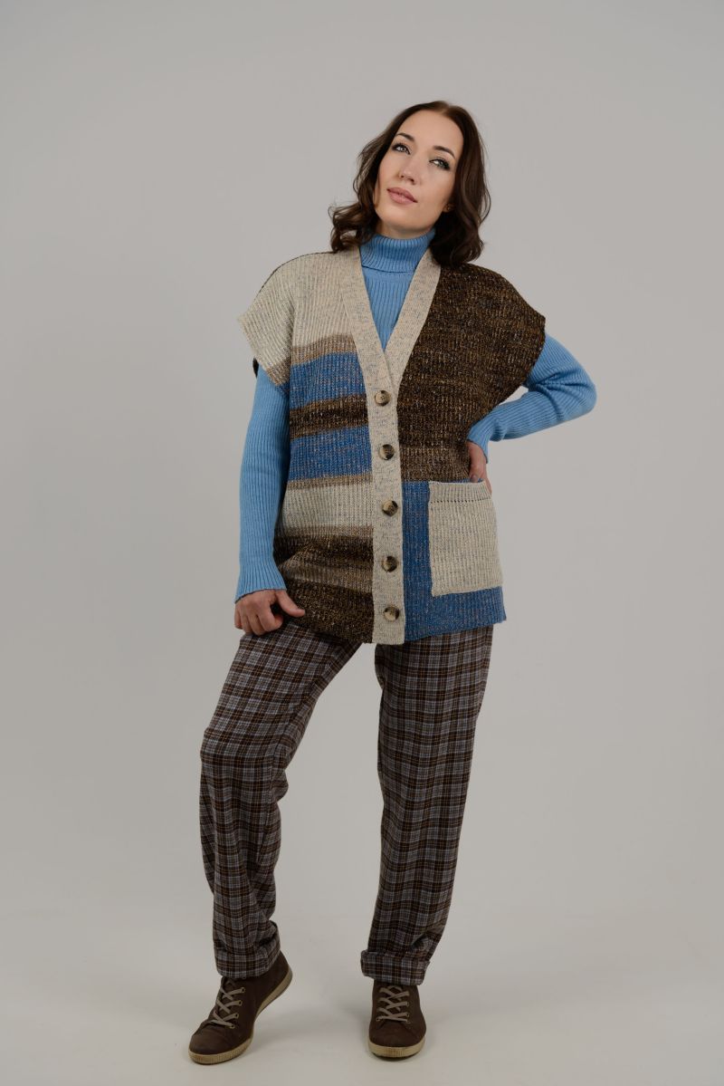 Описание: Жилет, застежка на пуговицы, один карман, линия плеча спущена, трикотаж.