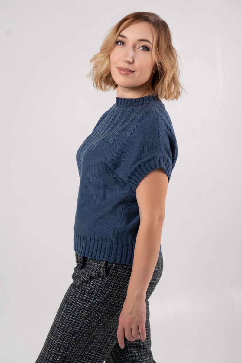 Описание: Жилет, линия плеча спущена, трикотаж.