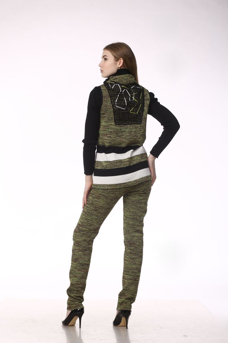 Описание: Жилет, застежка на пуговицы, воротник стойка, шнур, отделка крючок, трикотаж меланж