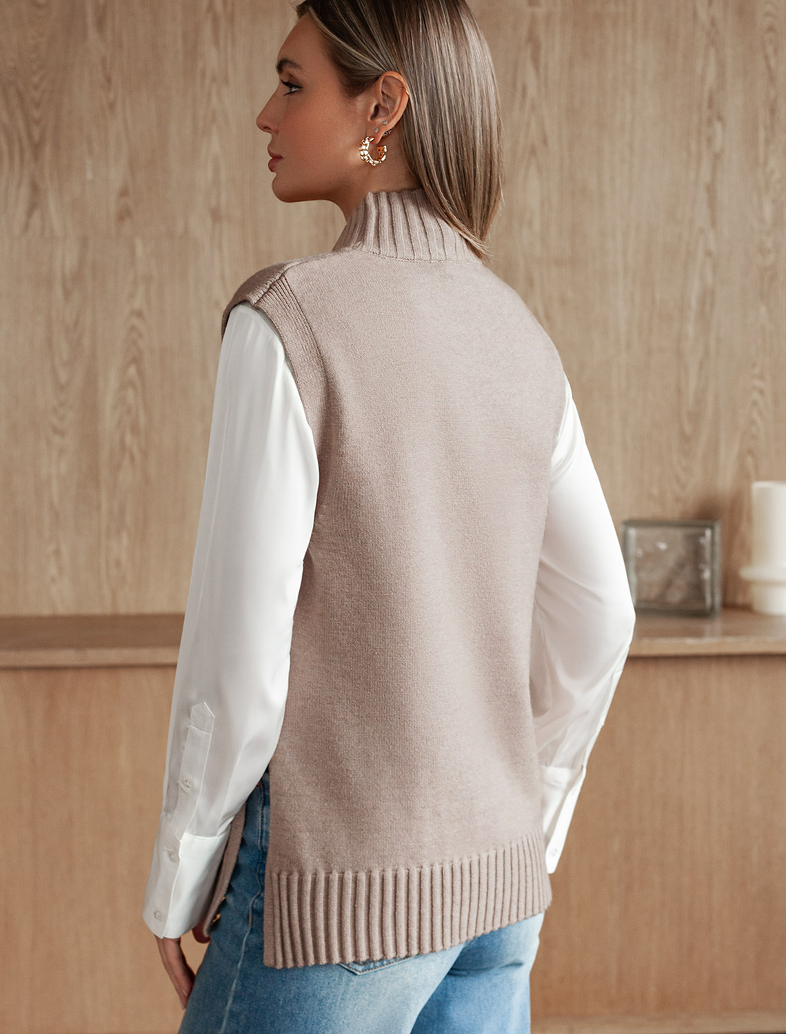 Жилет с воротом стойка выполнен из мягкой пряжи с кашемиром. Модель дополнена боковыми разрезами. Хорошо сочетается лонгсливами и блузками. Мягкая пряжа очень приятная к телу, поддержит комфорт на протяжении всего дня, при этом не перегревая. Сочетается в костюме с брюками D38.013, D38.012 и юбкой D36.016 макиато меланж