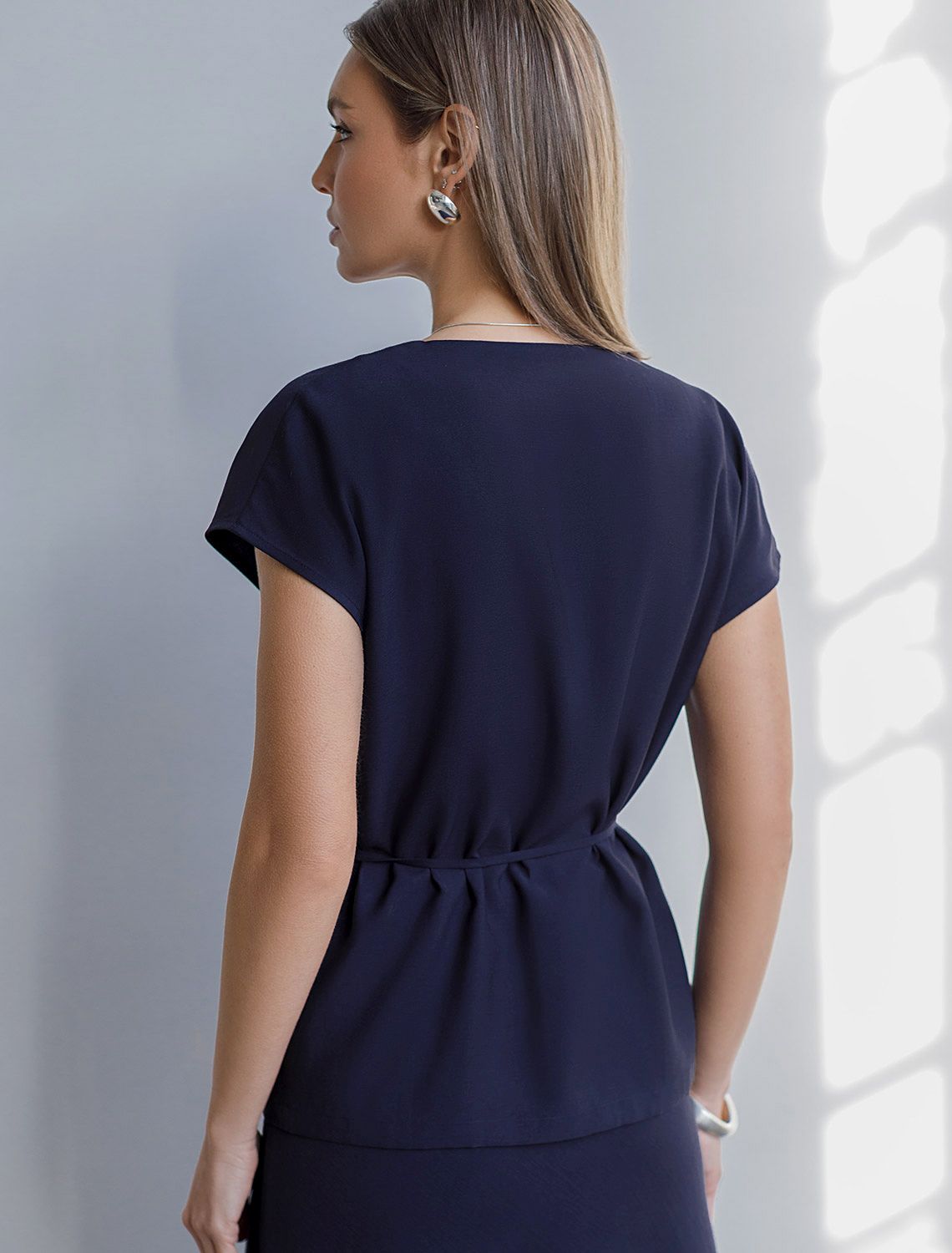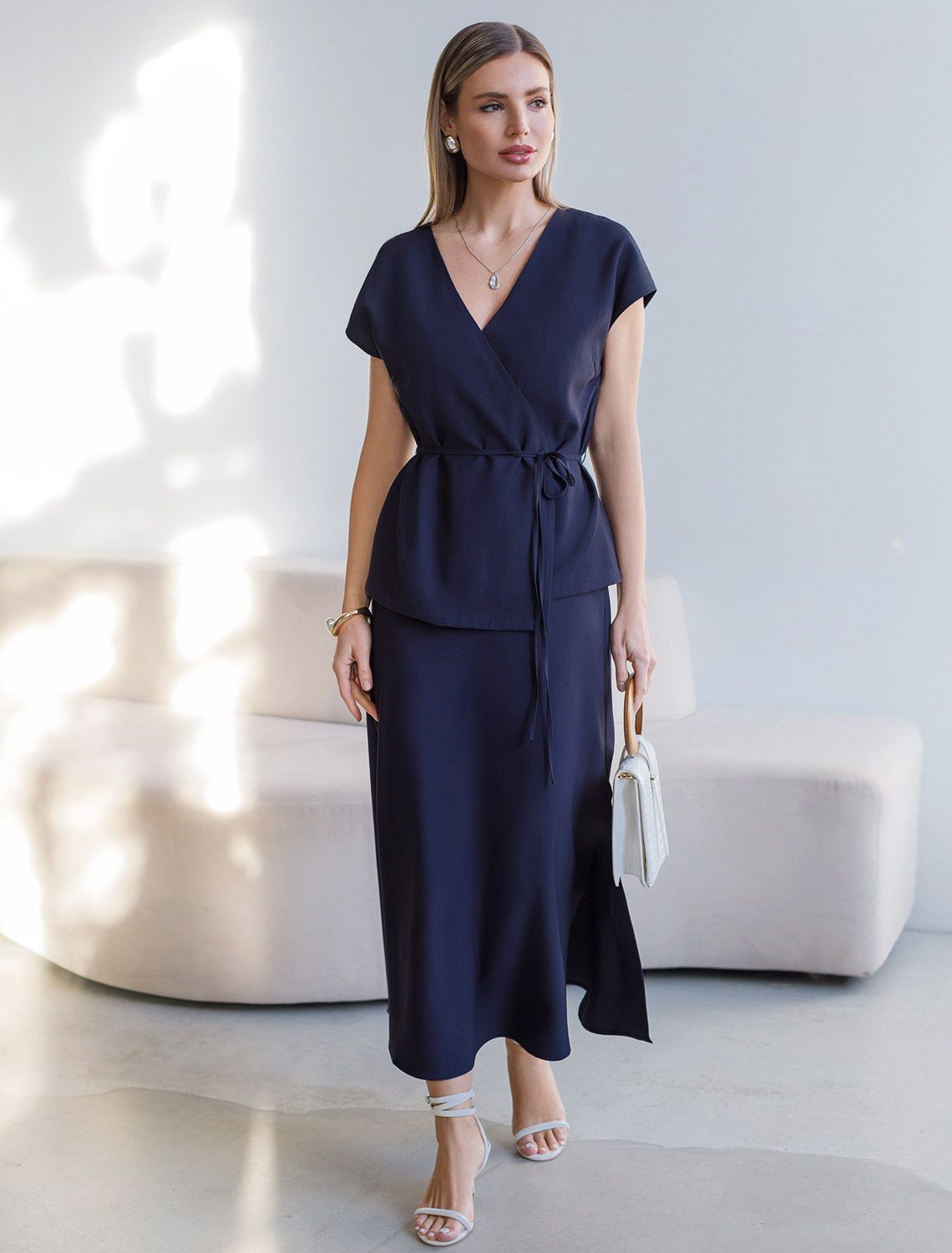Жилет темно-синего цвета выполнен из плотного лиоцелла.Лиоцелл это более дорогой и экологичный вариант вискозы, очень прочный и шелковистый. Ткань отличается от регулярной коллекции из лиоцелла - она содержит еще больше лиоцелла (92%), благодаря чему имеет более нежную шелковистую фактуру. Стильный фасон и легкий материал делают эту жилетку идеальным вариантом для весны и лета. Пояс мягко акцентирует талию, красиво облегает силуэт и корректирует пропорции, а V-вырез изящно подчеркивает линию шеи. Жилет можно носить без пояса, создавая расслабленный образ. Спущенная линия плеча позволяет использовать жилет, где требуется деловой дресс-код. Благодаря продуманному крою жилетка сидит идеально на разных фигурах, в том числе и на больших размерах..Такой жилет помогает создать актуальный и функциональный летний гардероб: он превосходно сочетается с разными низами, мгновенно преображая любой аутфит.