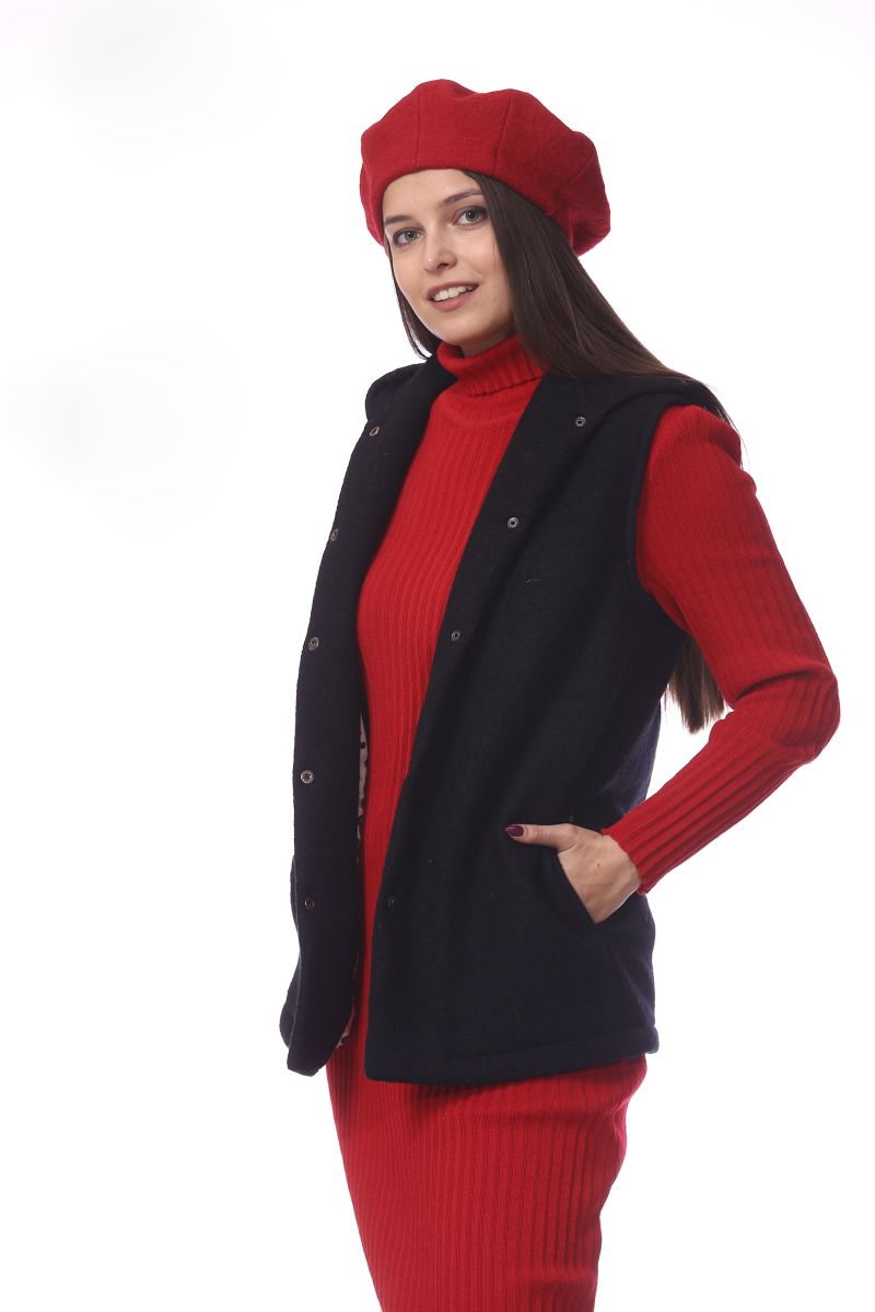 Описание: Жилет с капюшоном, подкладка штапель, карманы, вареная шерсть,
