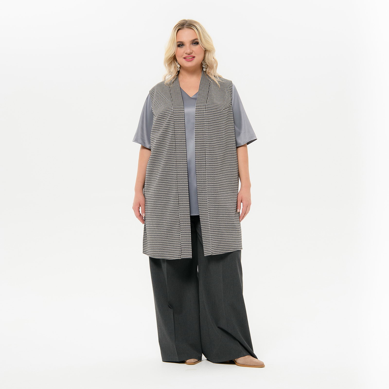 Удлиненный, стильный  жилет из плотного трикотажного джерси в клетку.  В боковых швах карманы и разрезы.