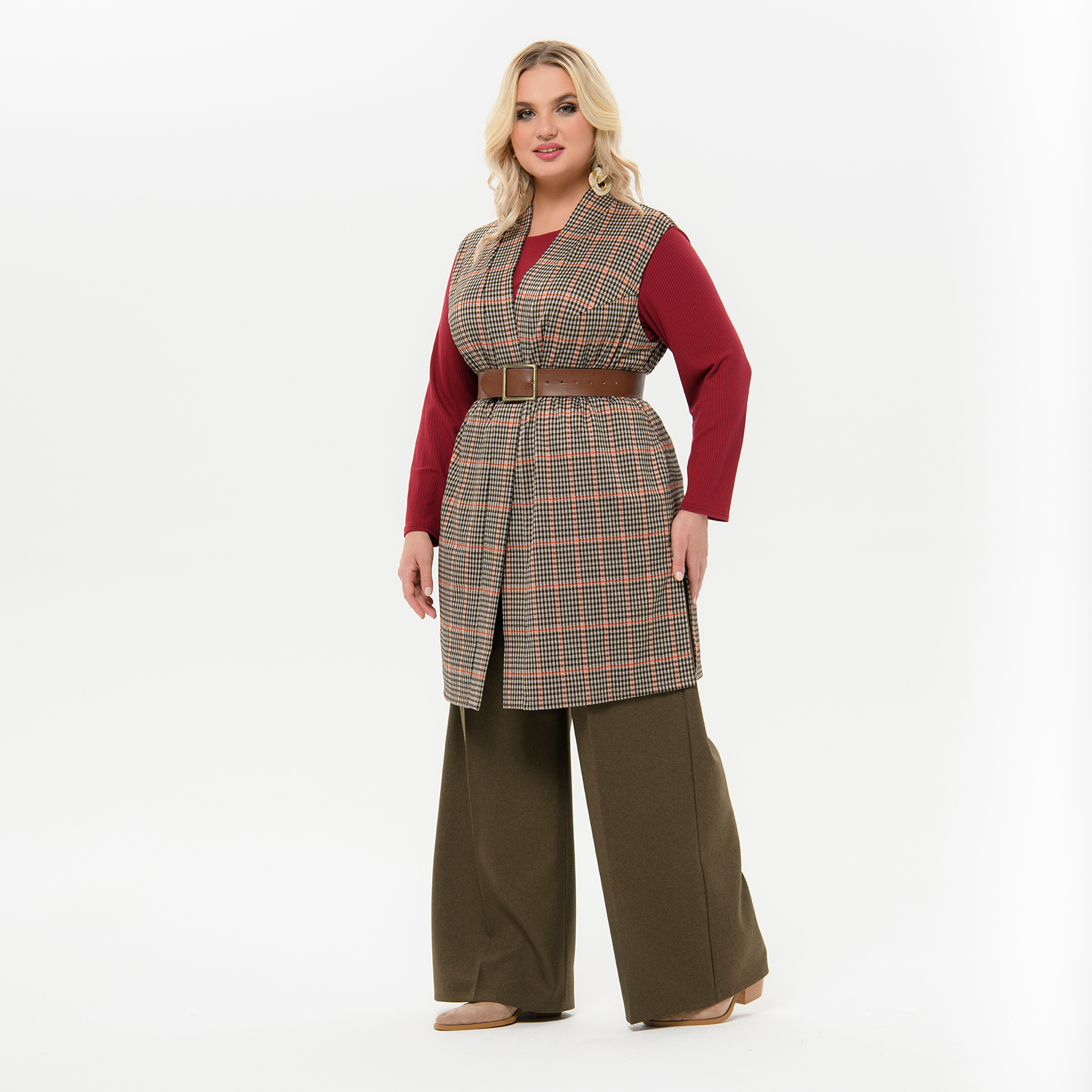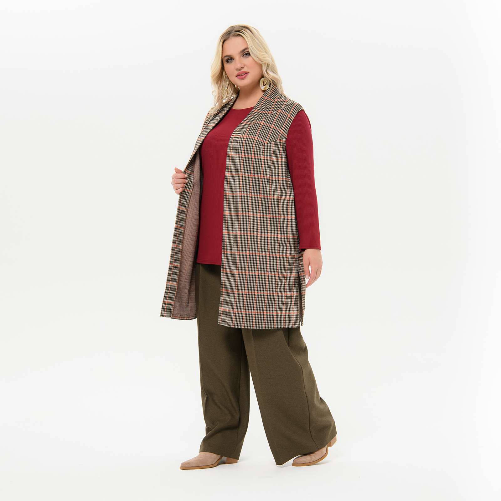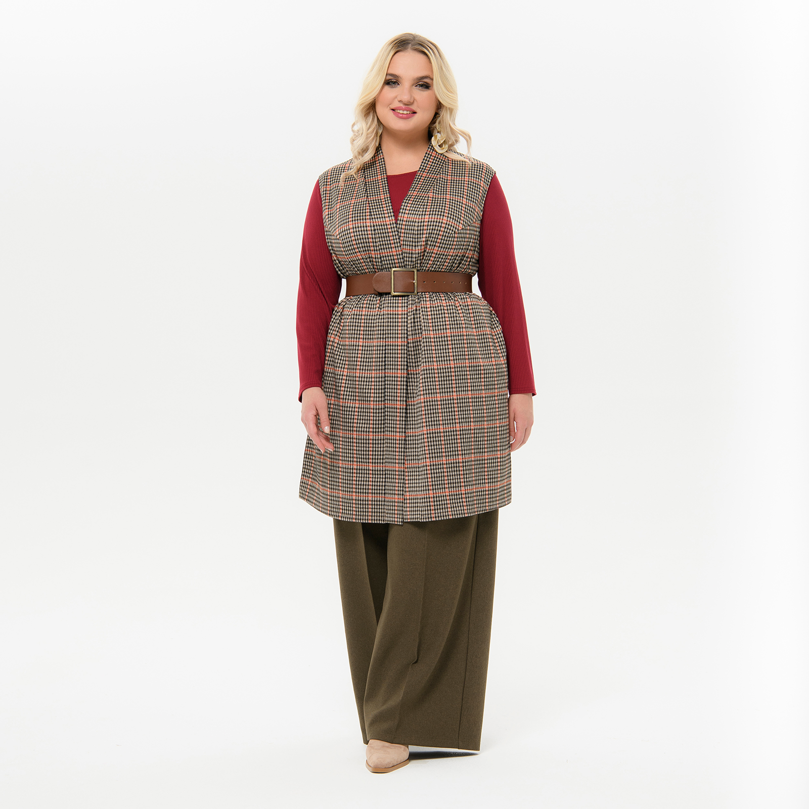 Жилет удлиненный из джерси, клетка бежево - коричневая