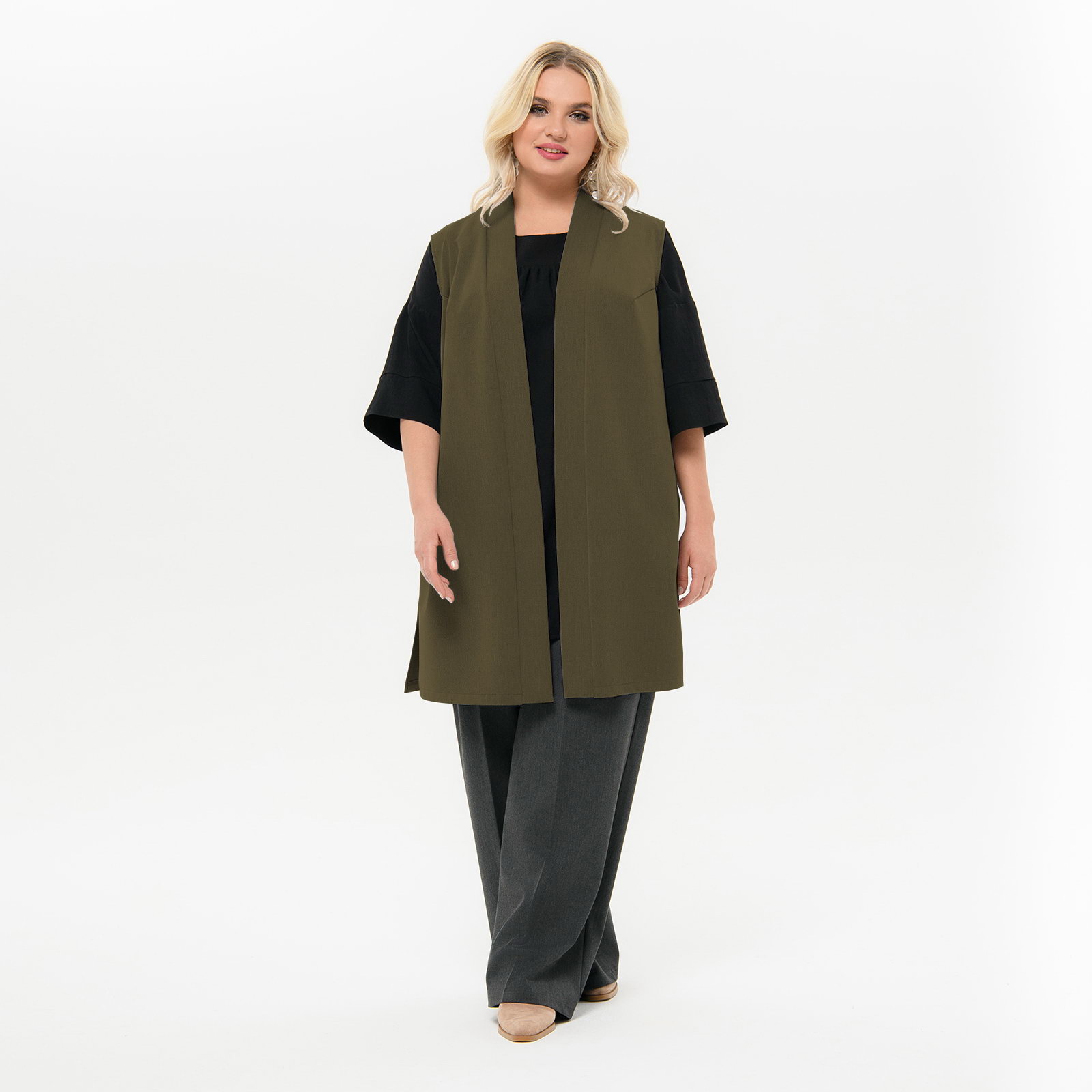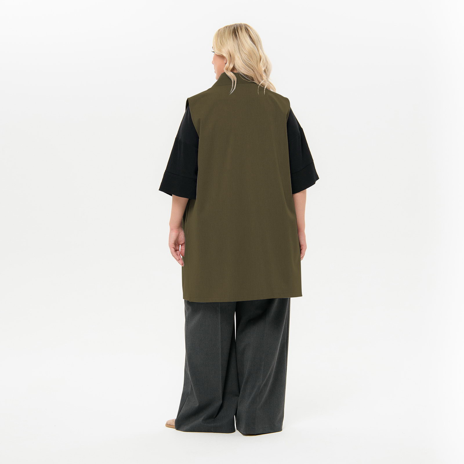 Жилет удлиненный из костюмной ткани, цвет "оливково-коричневый"