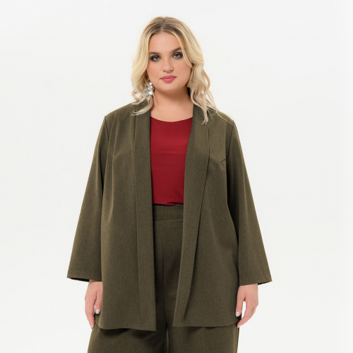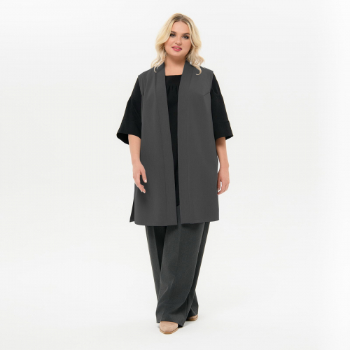 Удлиненный, стильный из плотной костюмной ткани с эластаном.  В боковых швах карманы и разрезы.