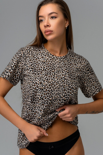 Модель Анфиса, рост 170 см, параметры 88-67-97 см. На ней футболка 44 размера.