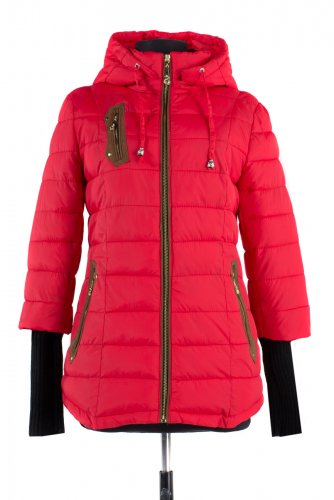Застегивается на молнию и клепки. Капюшон отстегивается.