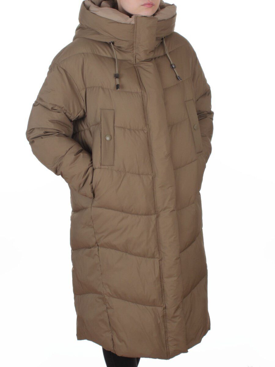 8867 KHAKI Пальто зимнее женское (200 гр. холлофайбер)