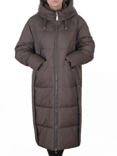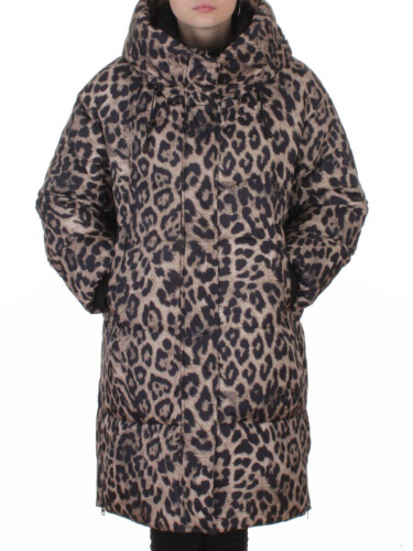 8892 BROWN/LEOPARD Куртка зимняя женская оверсайз с вшитой жилеткой (200 гр. холлофайбер)