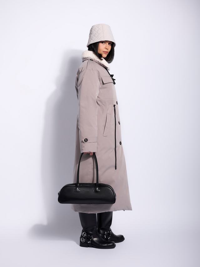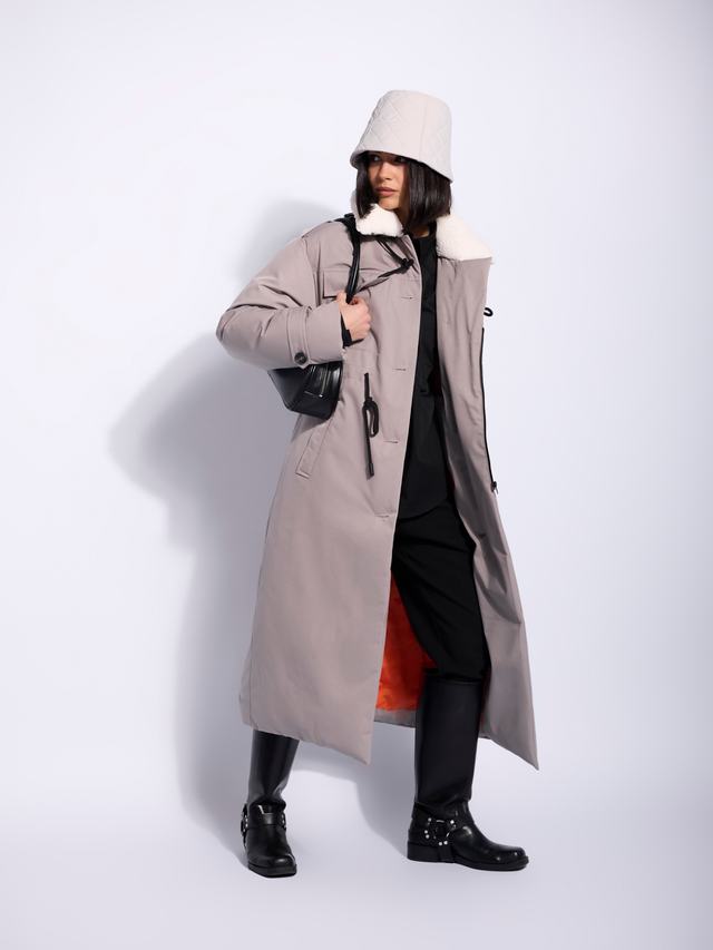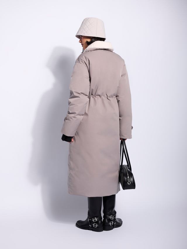 Пуховик, который стал фаворитом наших клиентов! Это 120 см чистого тепла из 90% гусиного пера и 10% пуха, которые помогут выйти на улицу в самых холодный день. Дополнительные детяли их меха на воротнике защитят шею от ветра. Внутренний манжет рукава сделан из велюра, чтобы избежать попадания ветра и снега внутрь. Мы добавили кулиску на талии, чтобы вы могли регулировать силуэт от прмяого до приталенного.